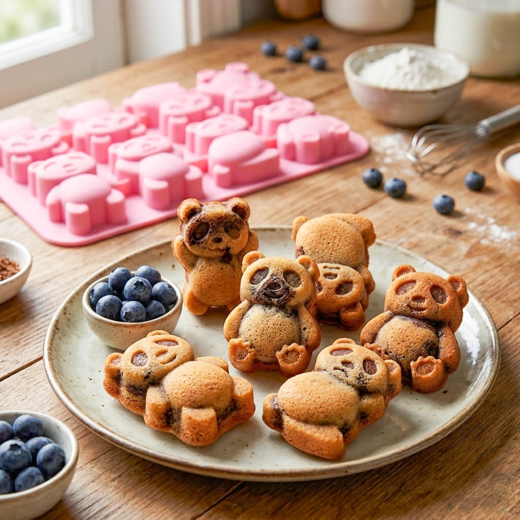 Každý koláčik má jasne rozpoznateľné ušká, očká aj labky – po upečení vzniknú malé pandy, ktoré deti okamžite spoznajú.
